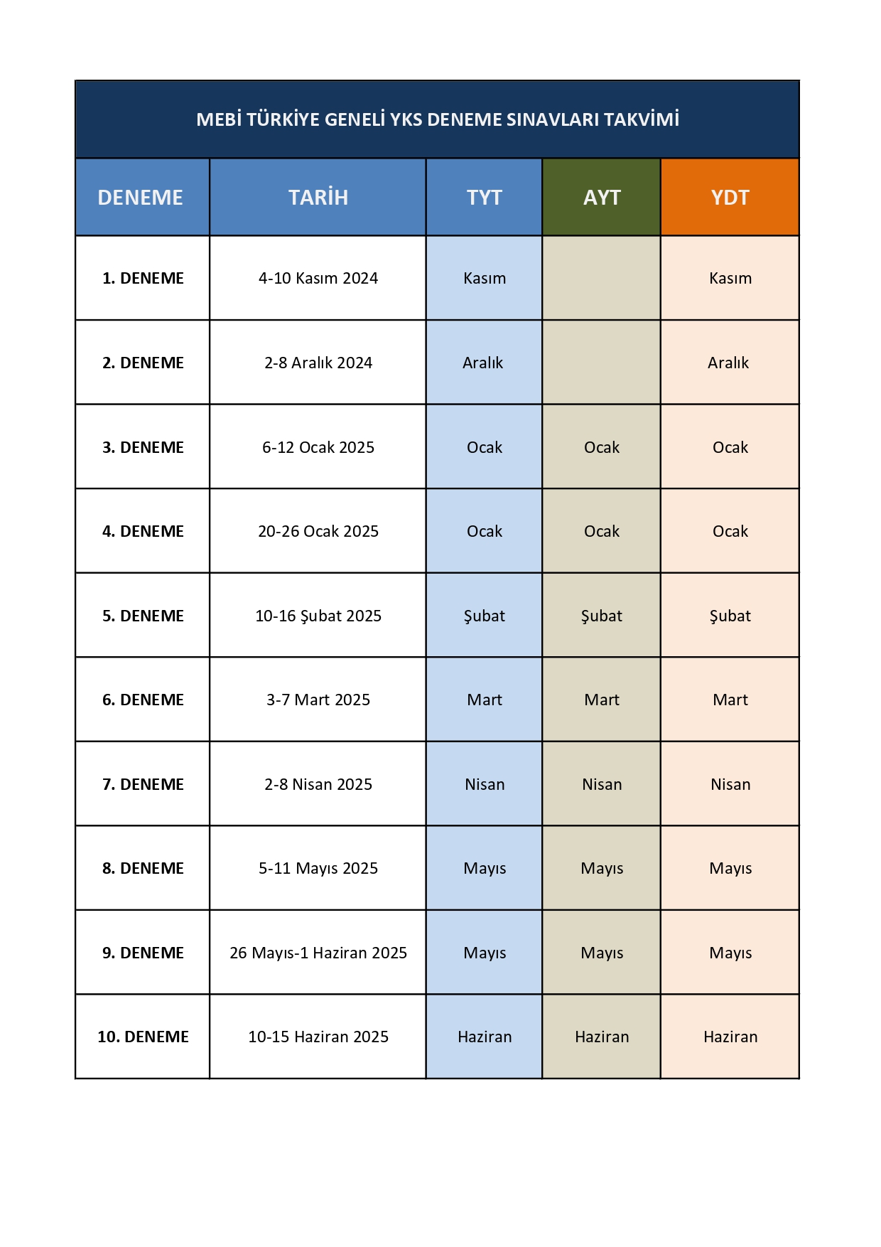 4-10 Kasım 2024 Tarihinde YKS Deneme Sınavı