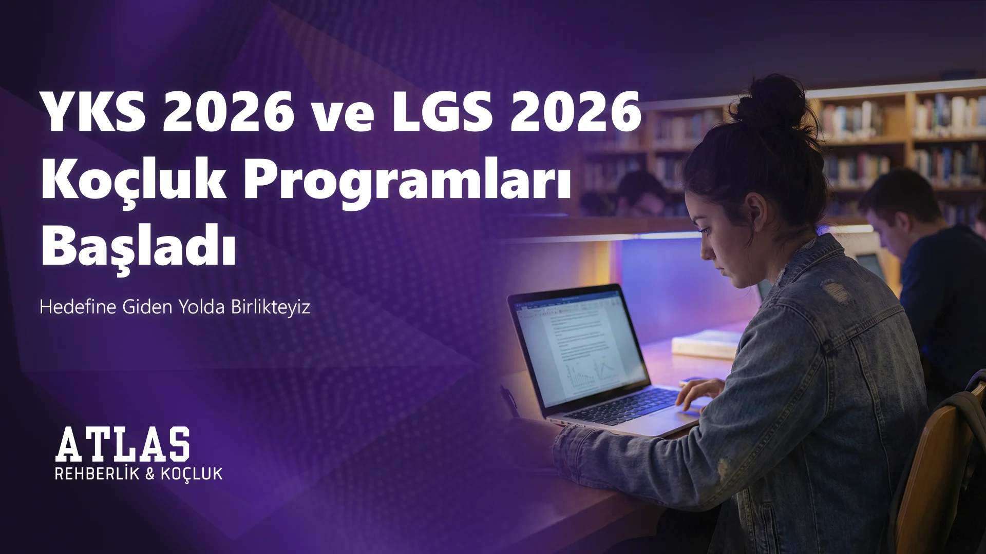 Yeni eğitim-öğretim dönemiyle birlikte YKS 2026 ve LGS 2026 sınavlarına hazırlık süreci resmen başladı. Bu uzun ve zorlu maratonda yalnız değilsiniz! Atlas Rehberlik olarak, öğrencilerin hedeflerine emin adımlarla ulaşması için bireysel koçluk desteği sunuyoruz.